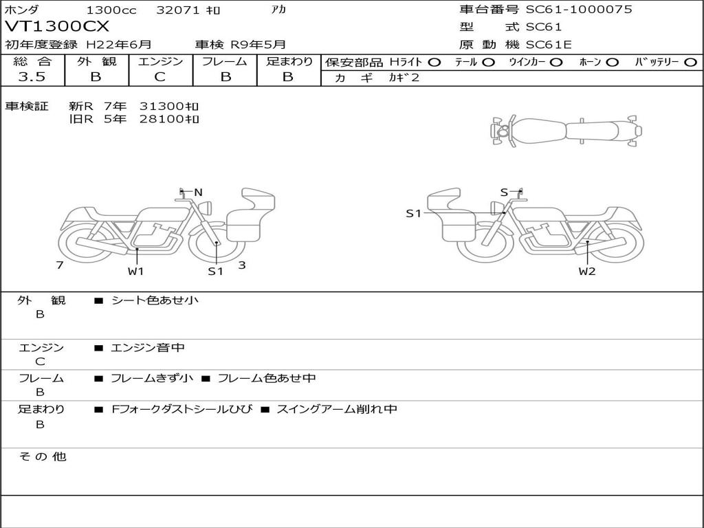 | Номер рамы / VIN | SC61-1000075 |