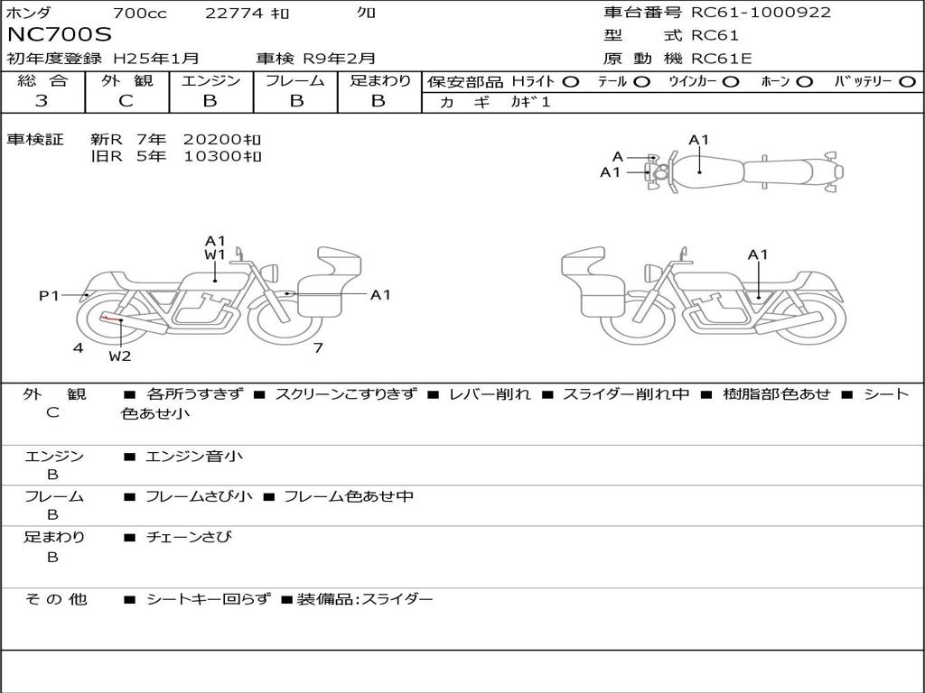 | Номер рамы / VIN | RC61-1000922 |