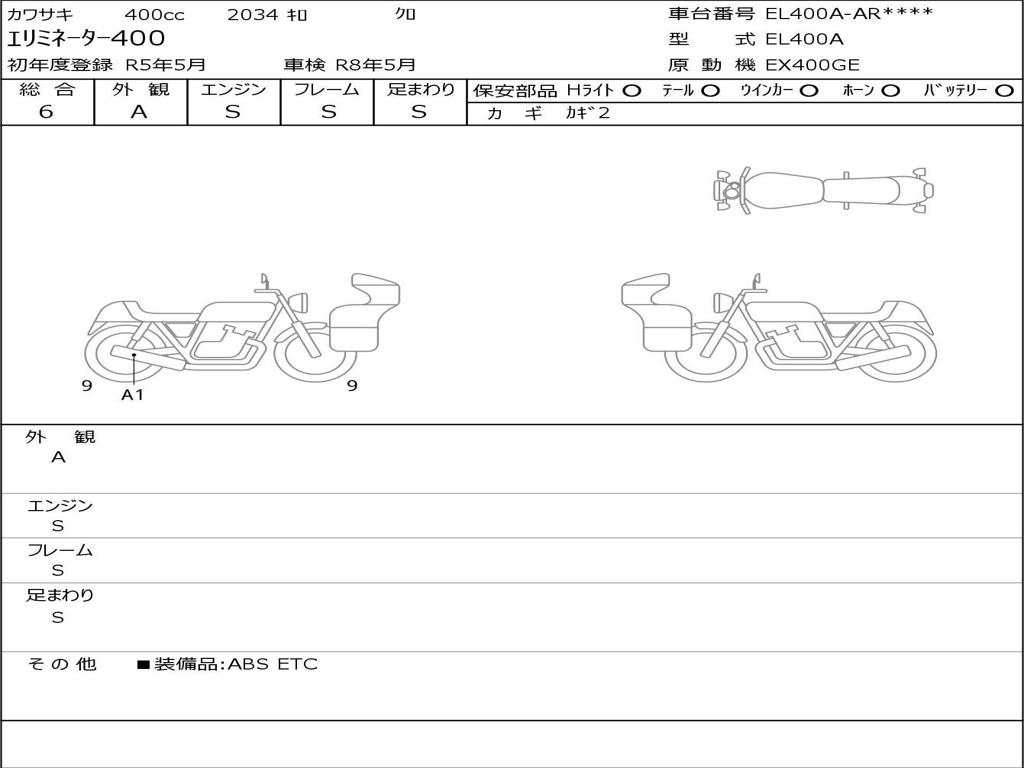 | Номер рамы / VIN | EL400A-AR3340 |