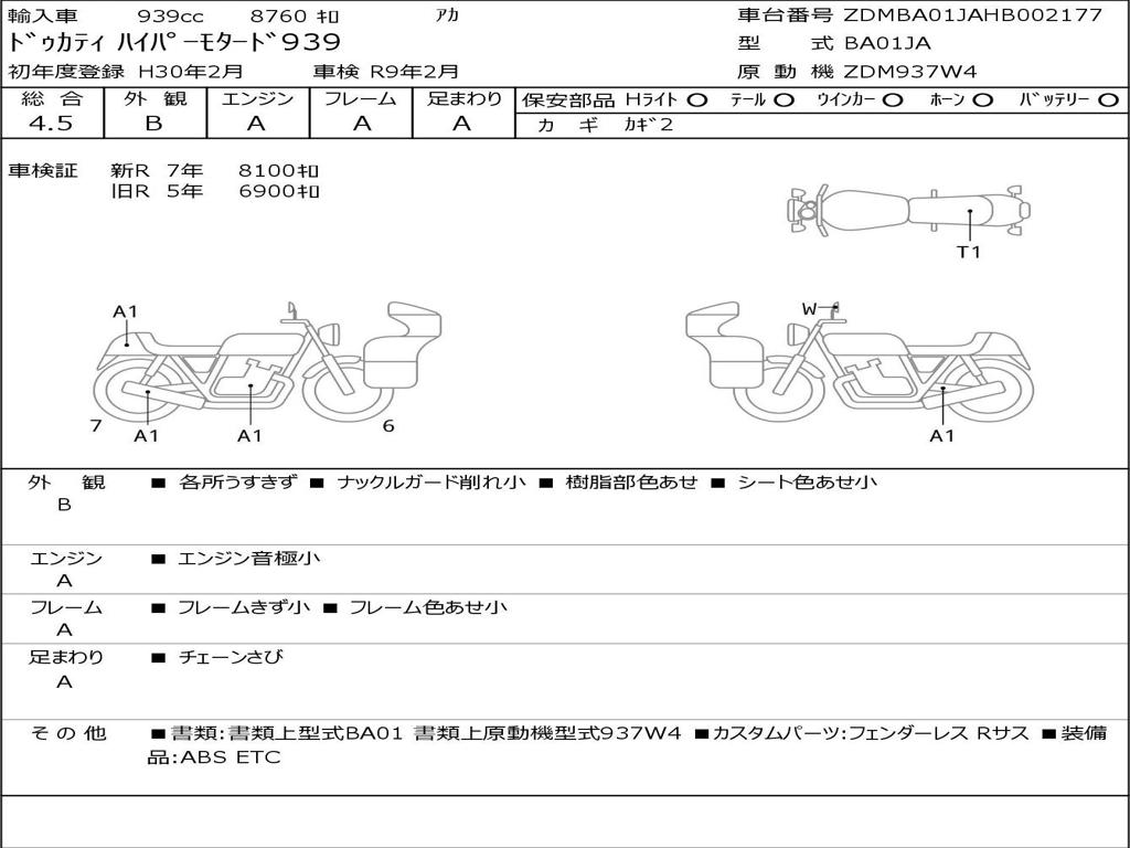 | Номер рамы / VIN | ZDMBA01JAHB002177 |
