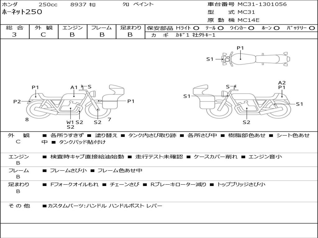 | Номер рамы / VIN | MC31-1301056 |