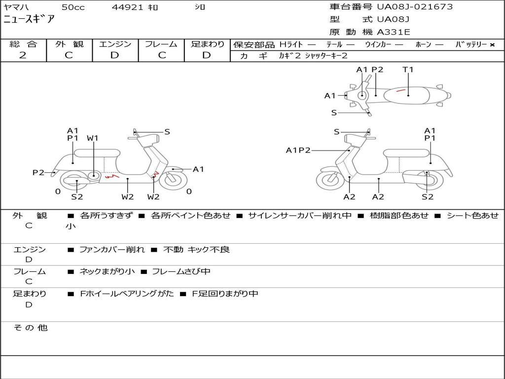 | Номер рамы / VIN | UA08J-021673 |
