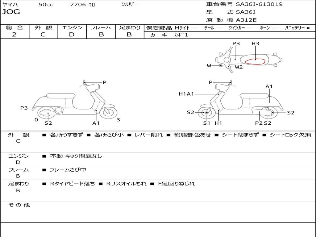 | Номер рамы / VIN | SA36J-613019 |