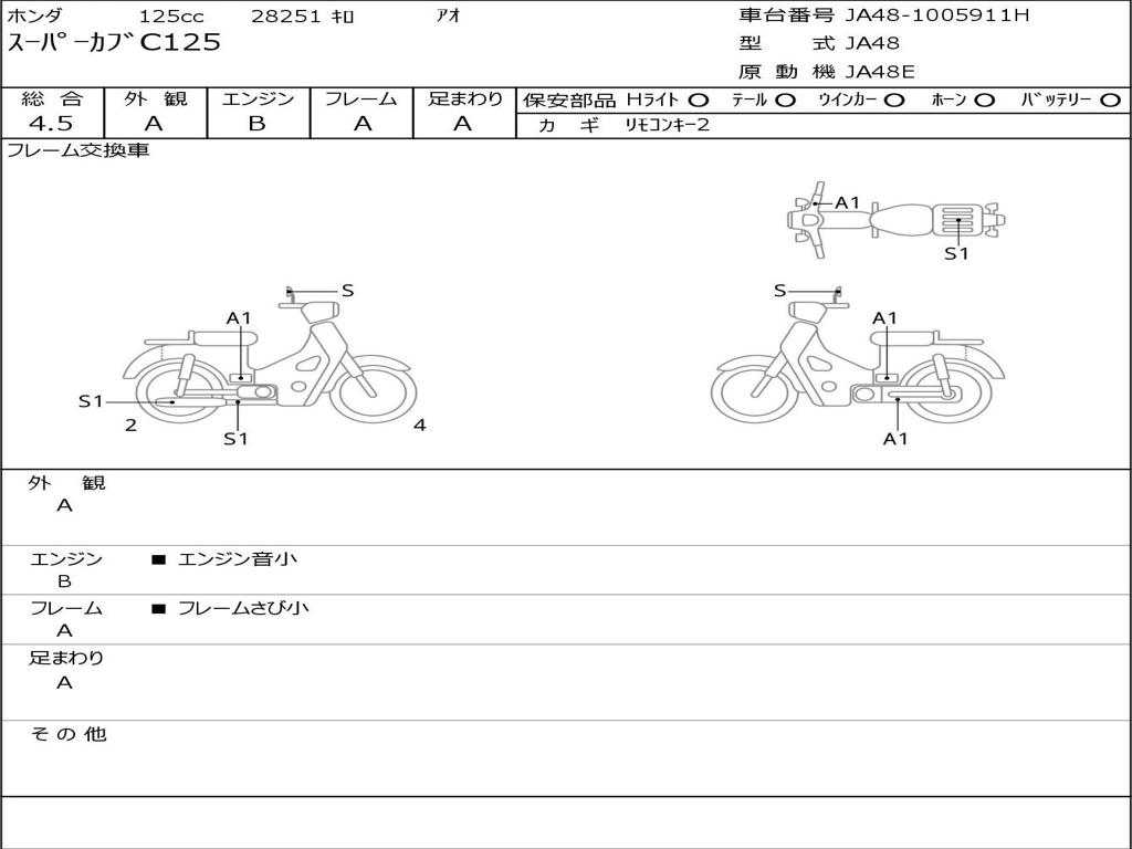 | Номер рамы / VIN | JA48-1005911H |