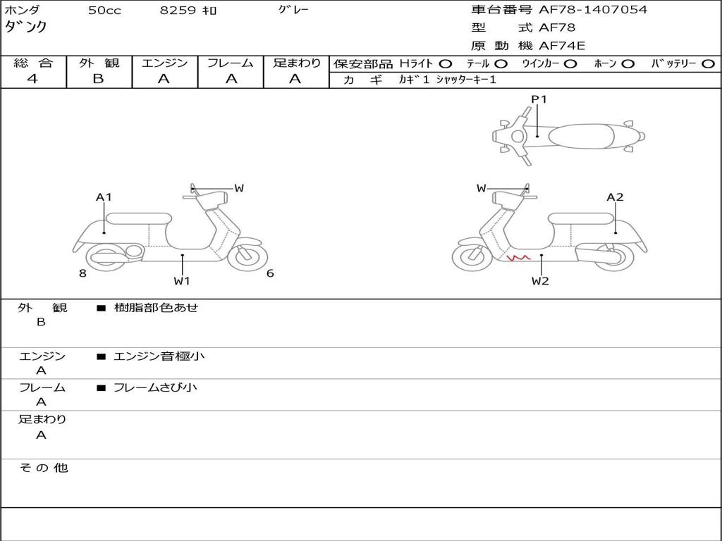 | Номер рамы / VIN | AF78-1407054 |