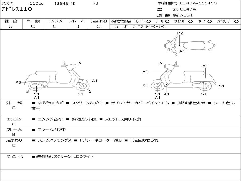 | Номер рамы / VIN | CE47A-111460 |