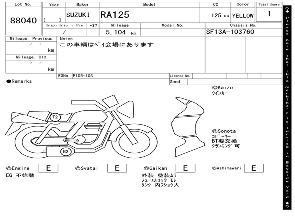 | Номер рамы / VIN | SF13A-103760 |