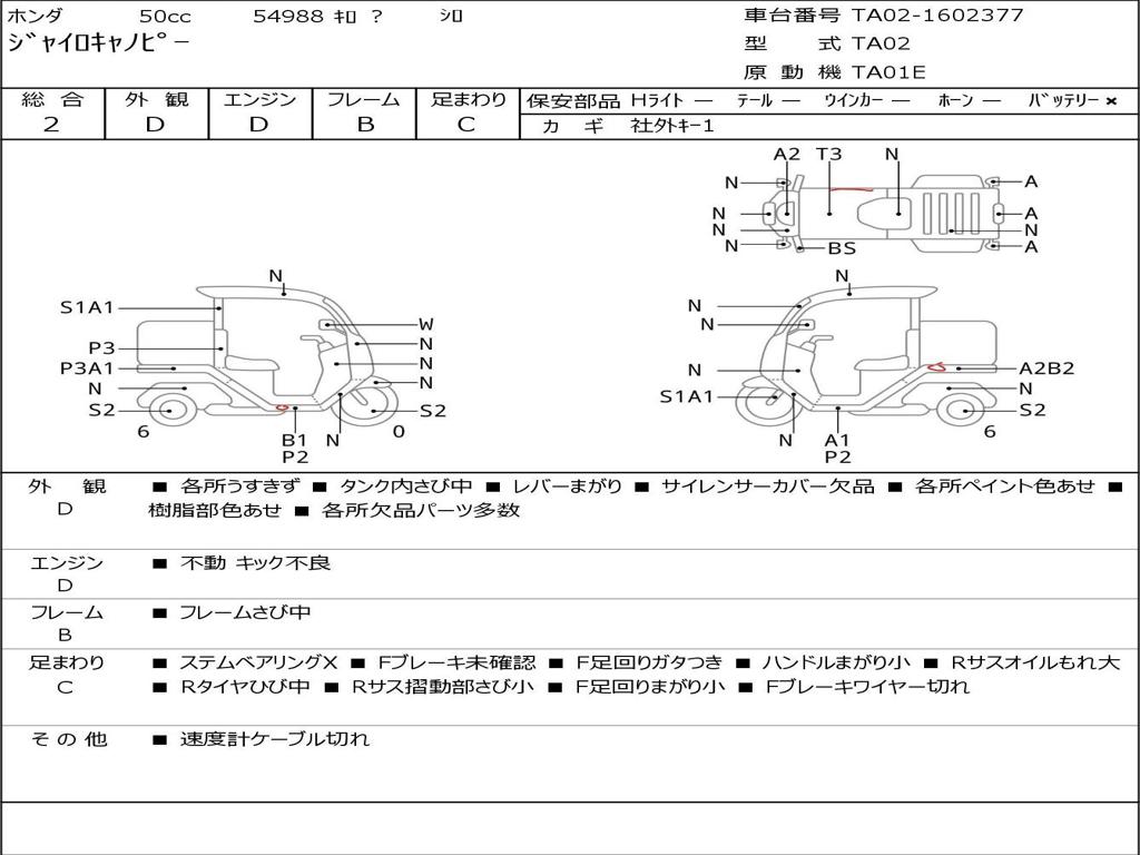 | Номер рамы / VIN | TA02-1602377 |