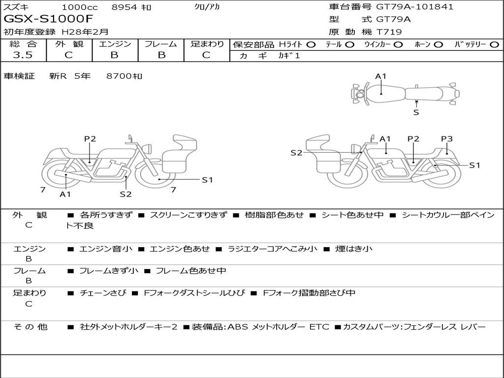 | Номер рамы / VIN | GT79A-101841 |