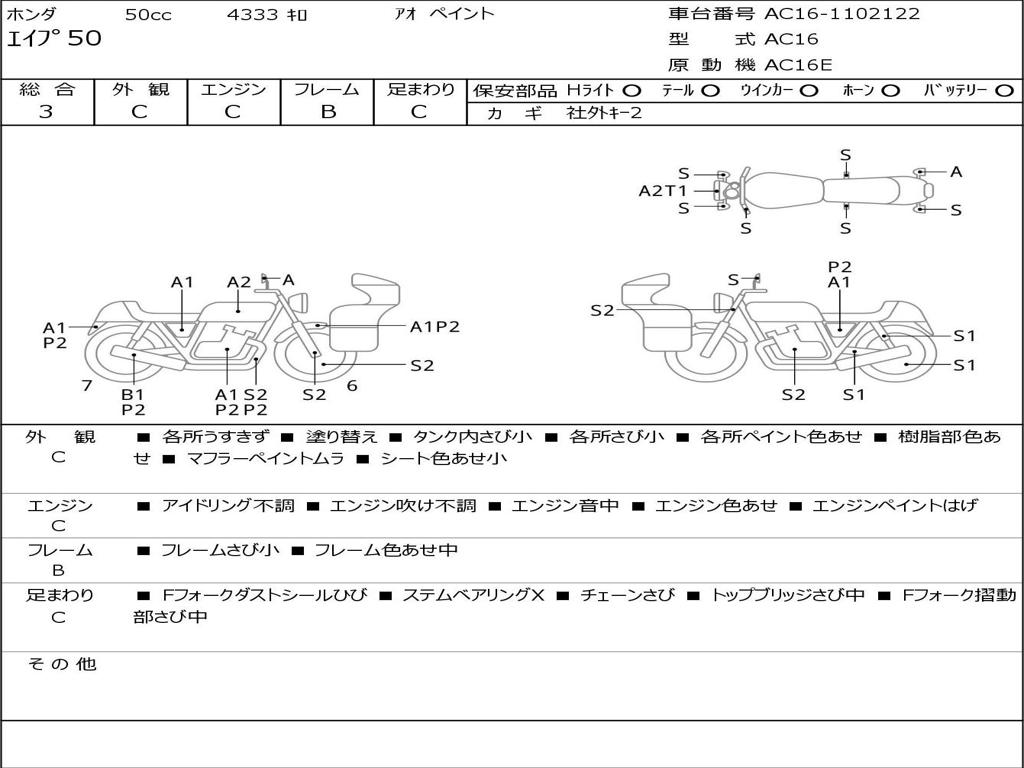 | Номер рамы / VIN | AC16-1102122 |