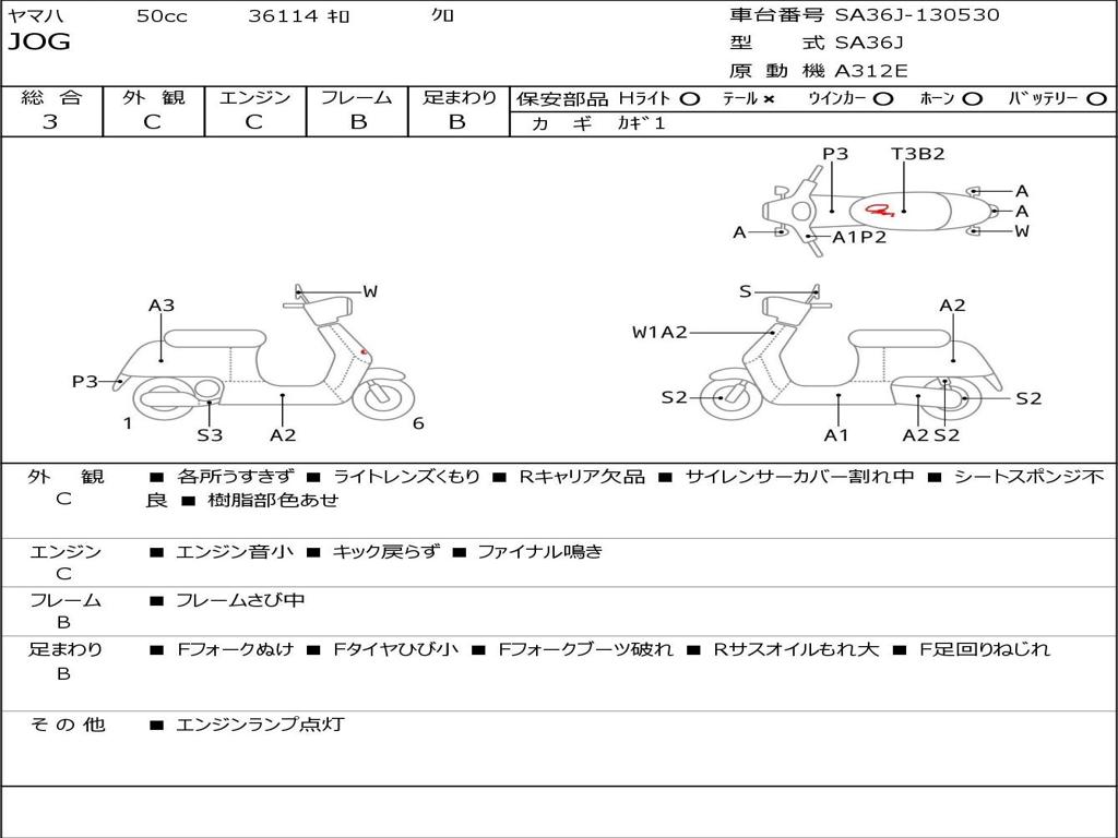 | Номер рамы / VIN | SA36J-130530 |
