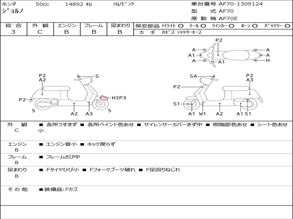 | Номер рамы / VIN | AF70-1309124 |