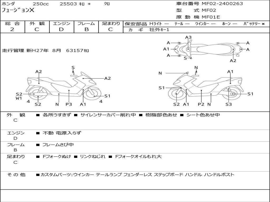 | Номер рамы / VIN | MF02-2400263 |