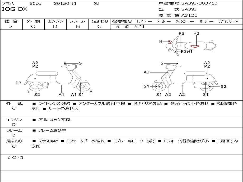| Номер рамы / VIN | SA39J-303710 |