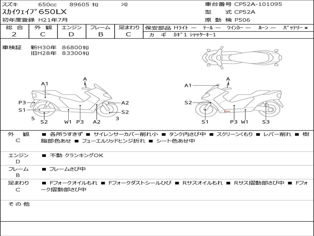 | Номер рамы / VIN | CP52A-101095 |