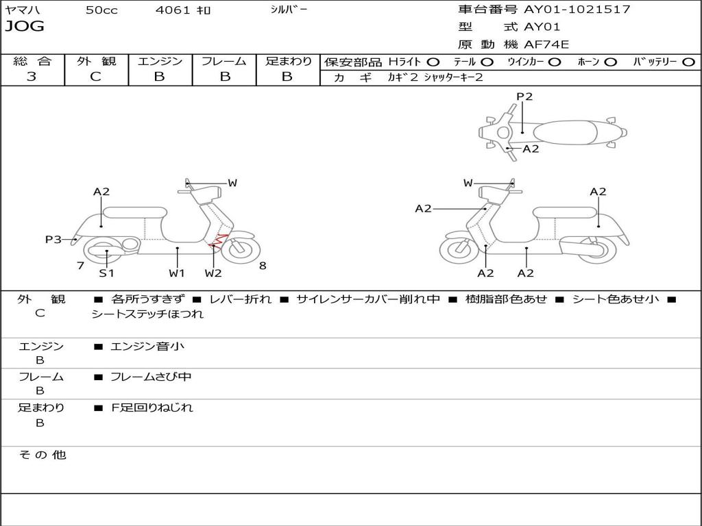 | Номер рамы / VIN | AY01-1021517 |