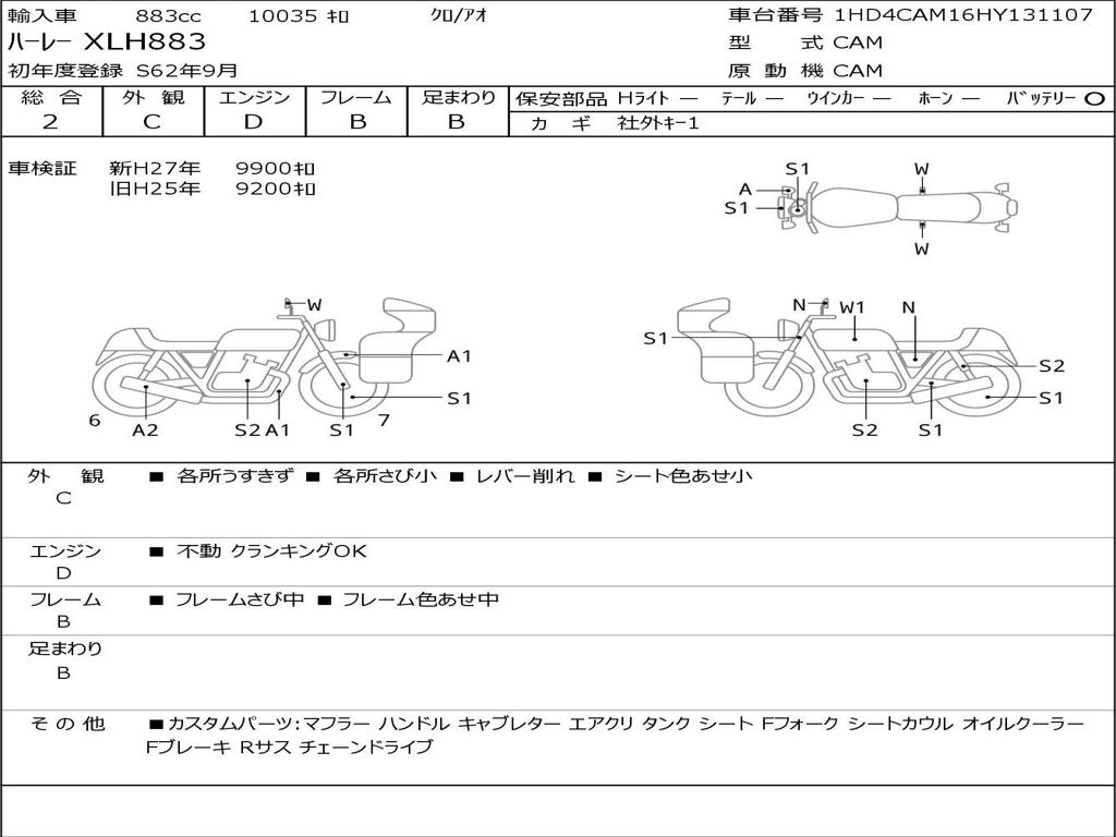 | Номер рамы / VIN | 1HD4CAM16HY131107 |