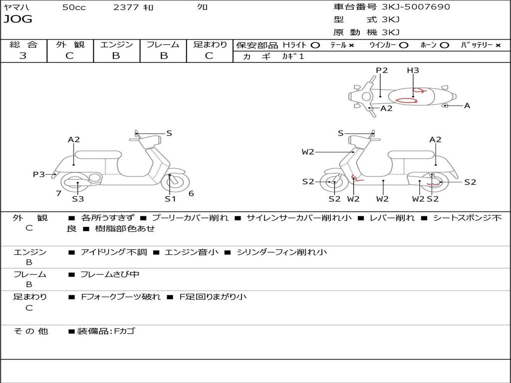 | Номер рамы / VIN | 3KJ-5007690 |