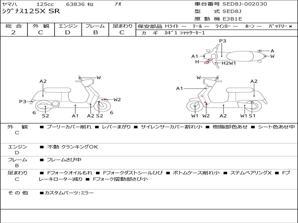 | Номер рамы / VIN | SED8J-002030 |