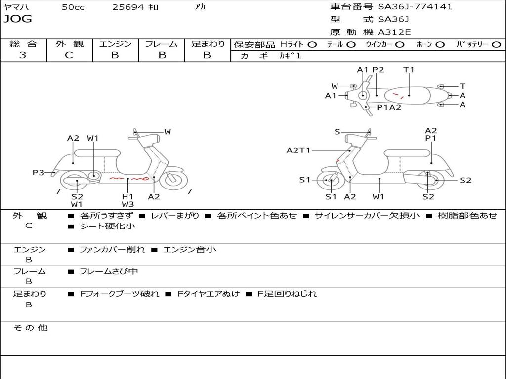 | Номер рамы / VIN | SA36J-774141 |