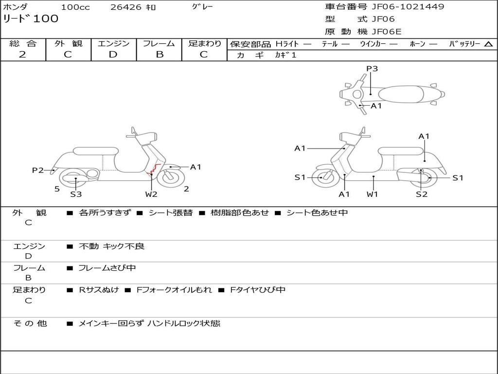 | Номер рамы / VIN | JF06-1021449 |