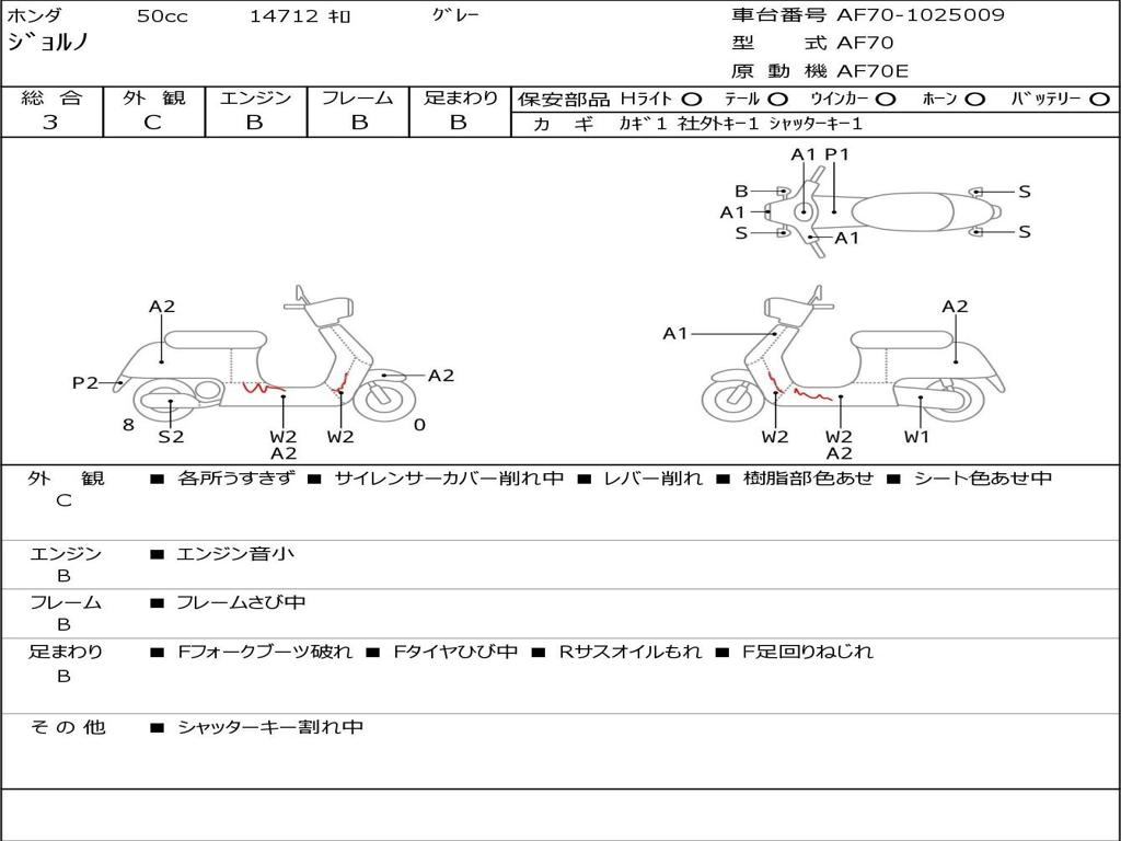 | Номер рамы / VIN | AF70-1025009 |