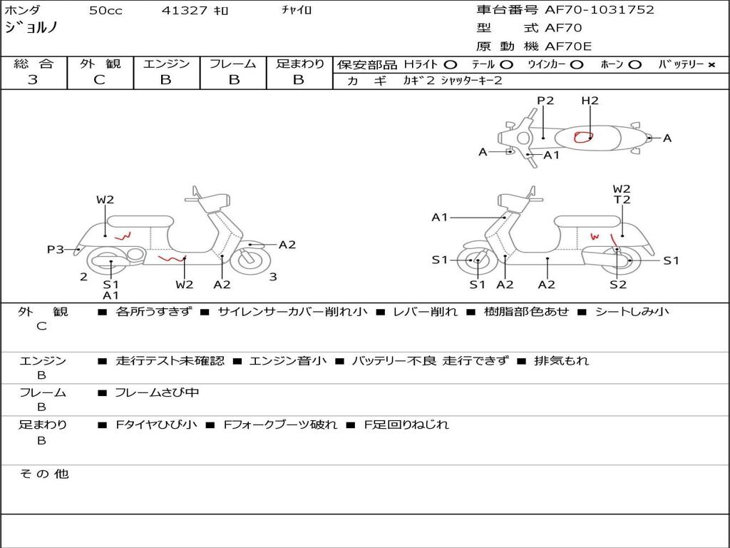| Номер рамы / VIN | AF70-1031752 |