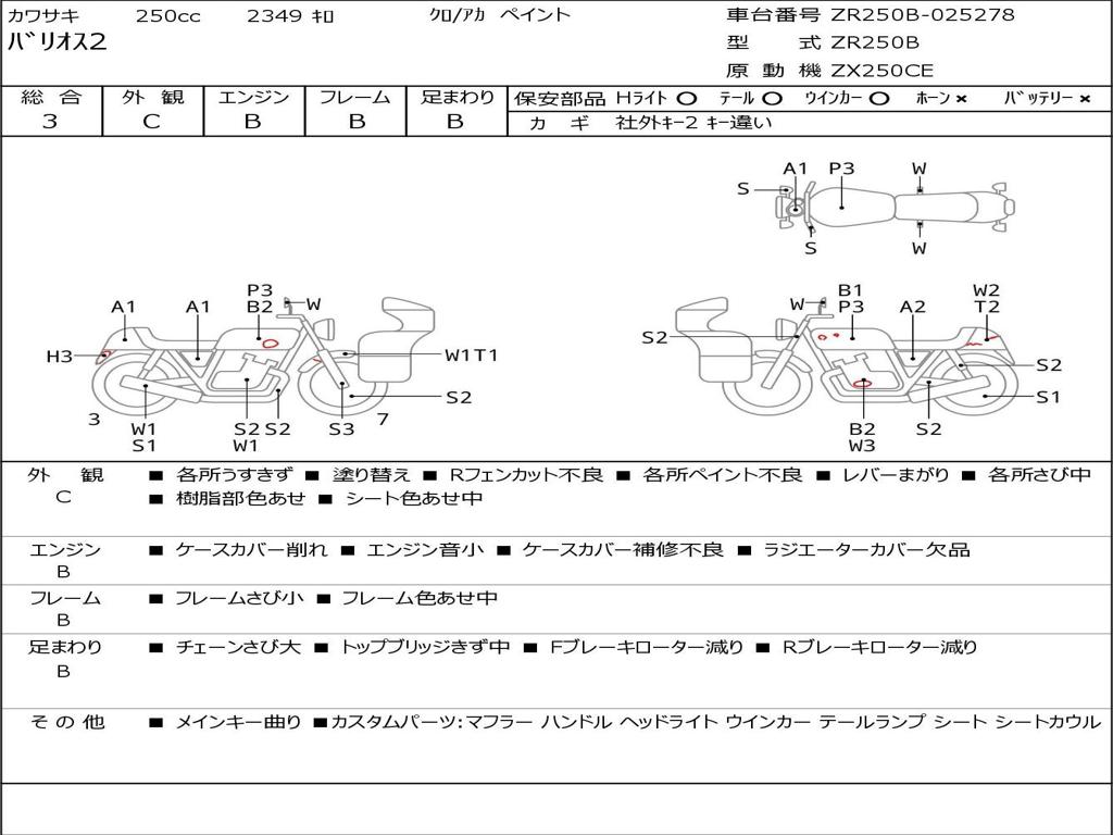 | Номер рамы / VIN | ZR250B-025278 |