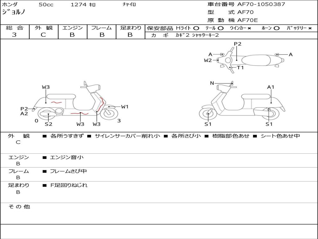 | Номер рамы / VIN | AF70-1050387 |