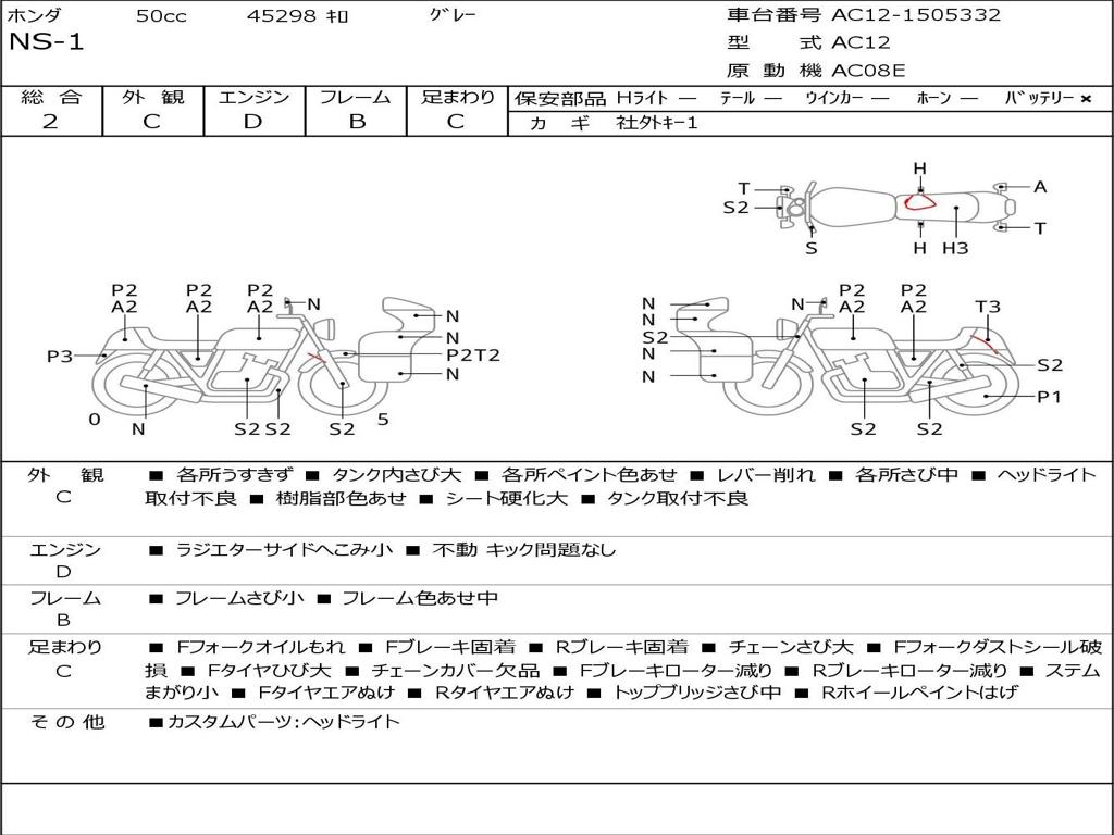 | Номер рамы / VIN | AC12-1505332 |