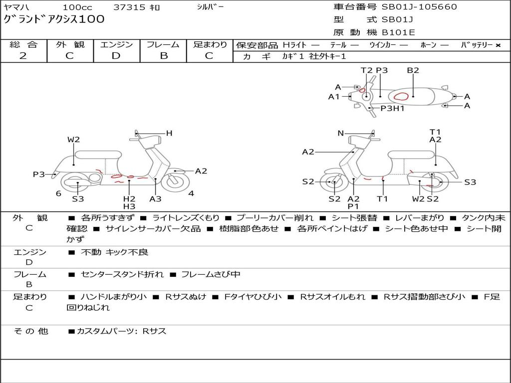 | Номер рамы / VIN | SB01J-105660 |