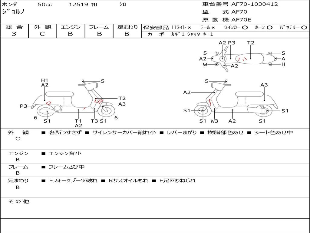 | Номер рамы / VIN | AF70-1030412 |