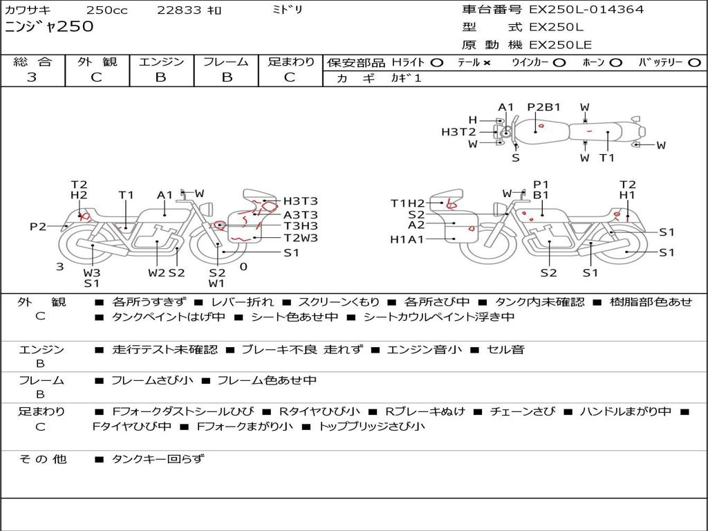 | Номер рамы / VIN | EX250L-014364 |
