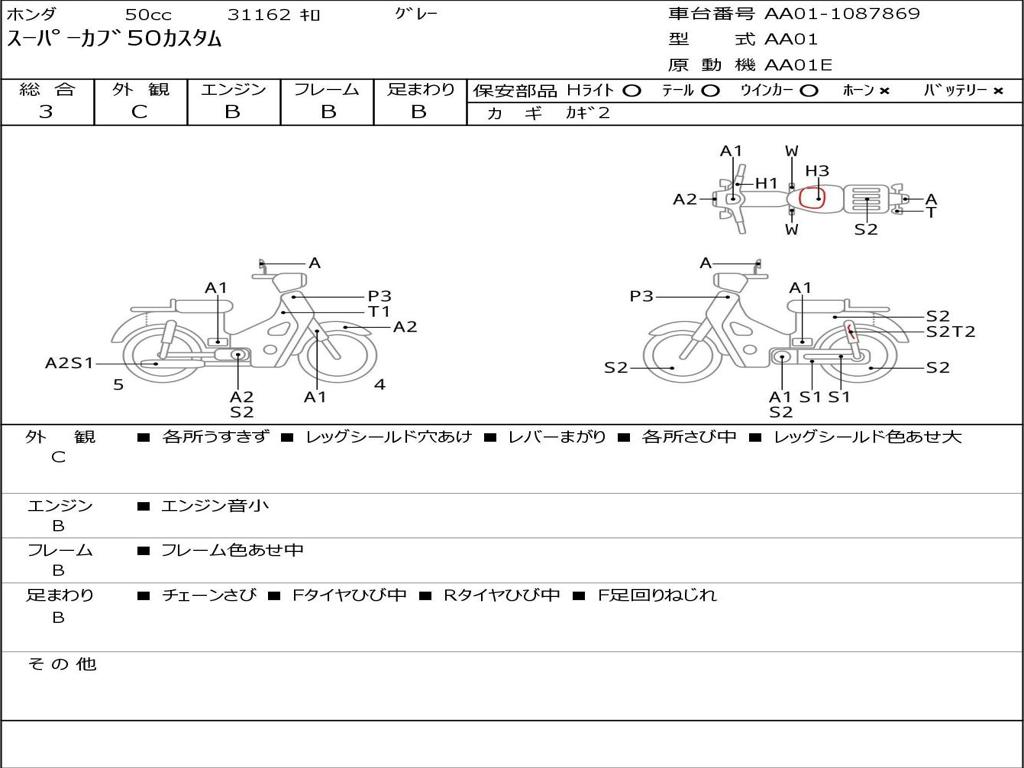 | Номер рамы / VIN | AA01-1087869 |