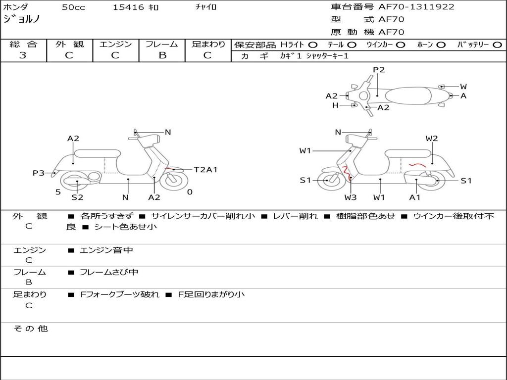 | Номер рамы / VIN | AF70-1311922 |