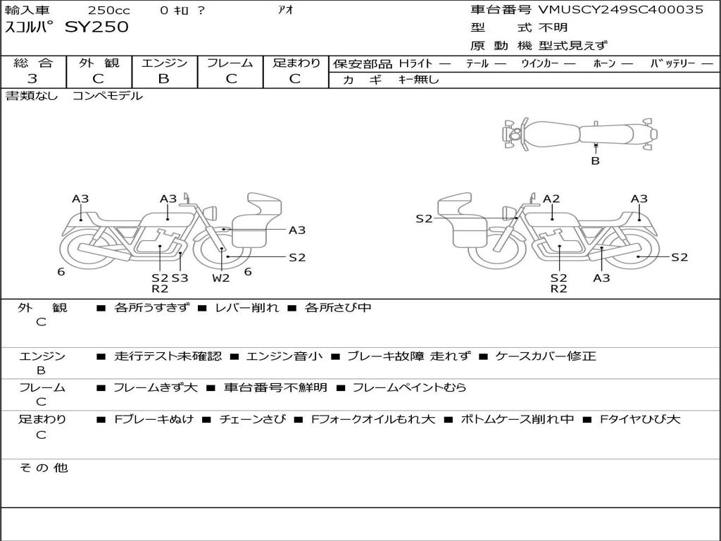 | Номер рамы / VIN | VMUSCY249SC400035 |