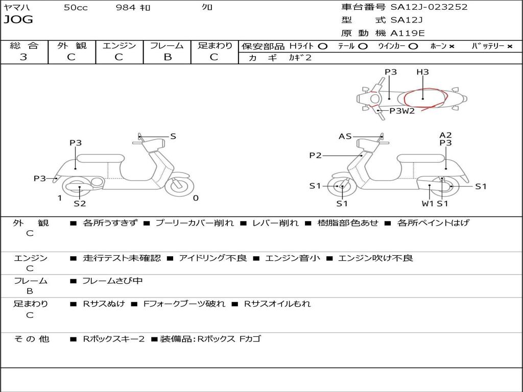 | Номер рамы / VIN | SA12J-023252 |