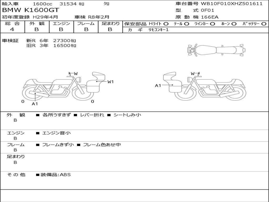 | Номер рамы / VIN | WB10F010XHZ501611 |