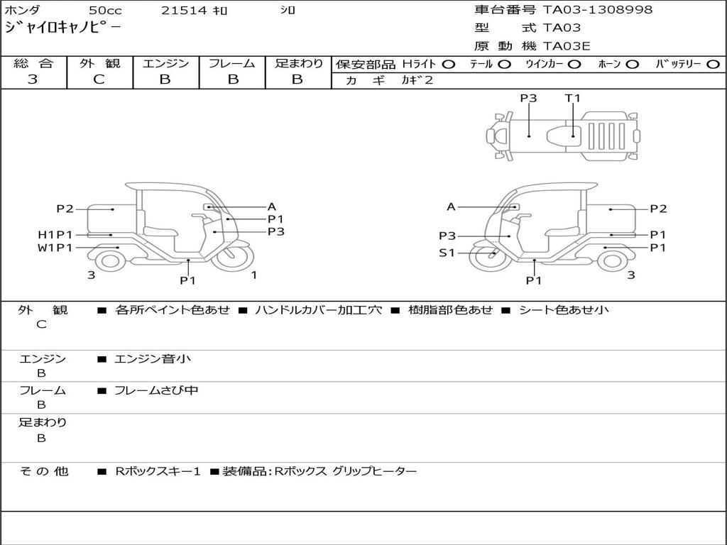 | Номер рамы / VIN | TA03-1308998 |