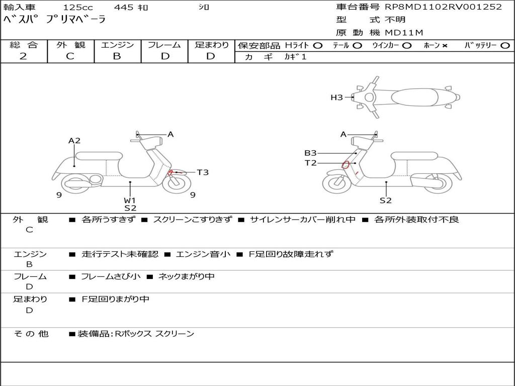 | Номер рамы / VIN | RP8MD1102RV001252 |