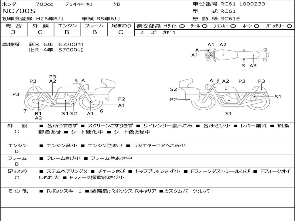 | Номер рамы / VIN | RC61-1000239 |