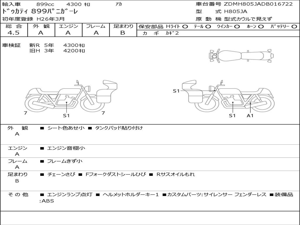 | Номер рамы / VIN | ZDMH805JADB016722 |