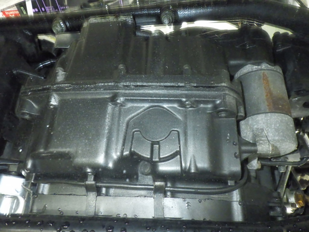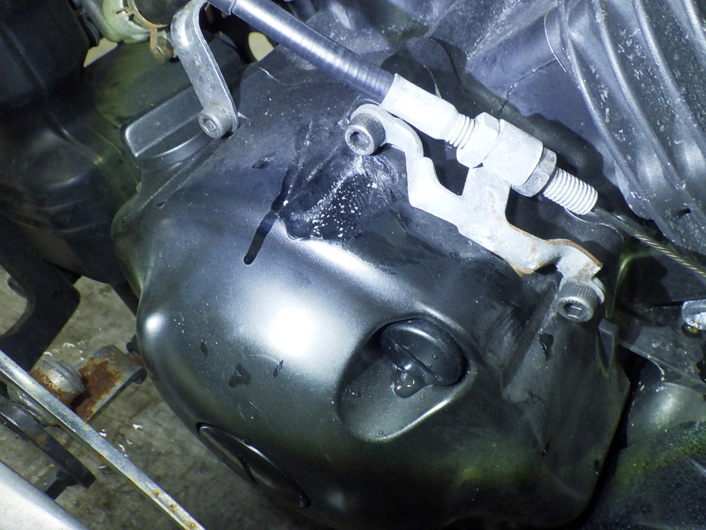 | потек масла | снизу <много> |