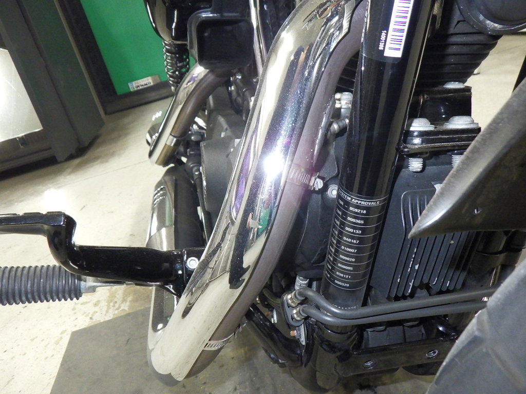 | внешняя часть вилки | царапины, потек масла |