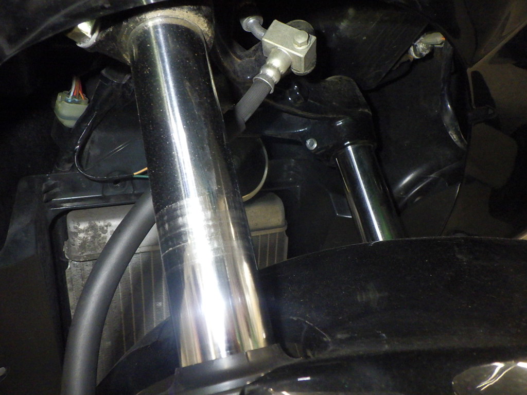 | внешняя часть вилки | царапины <много>, потек масла |