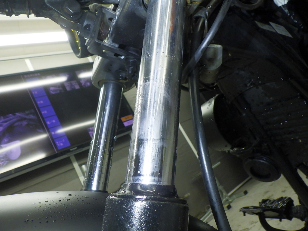 | внешняя часть вилки | потек масла <много>, неисправен сальник, перекрашено |