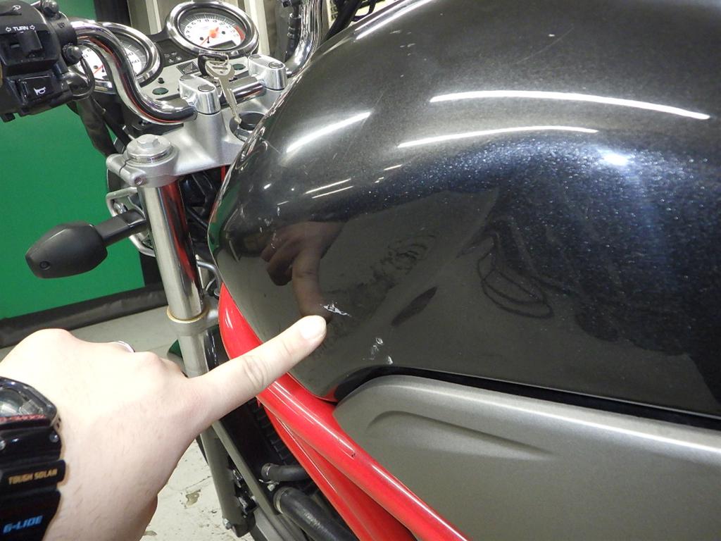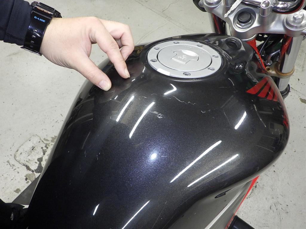 | бензобак | царапины <много>, вмятина <немного>, износ(потертость) краски <очень много> |