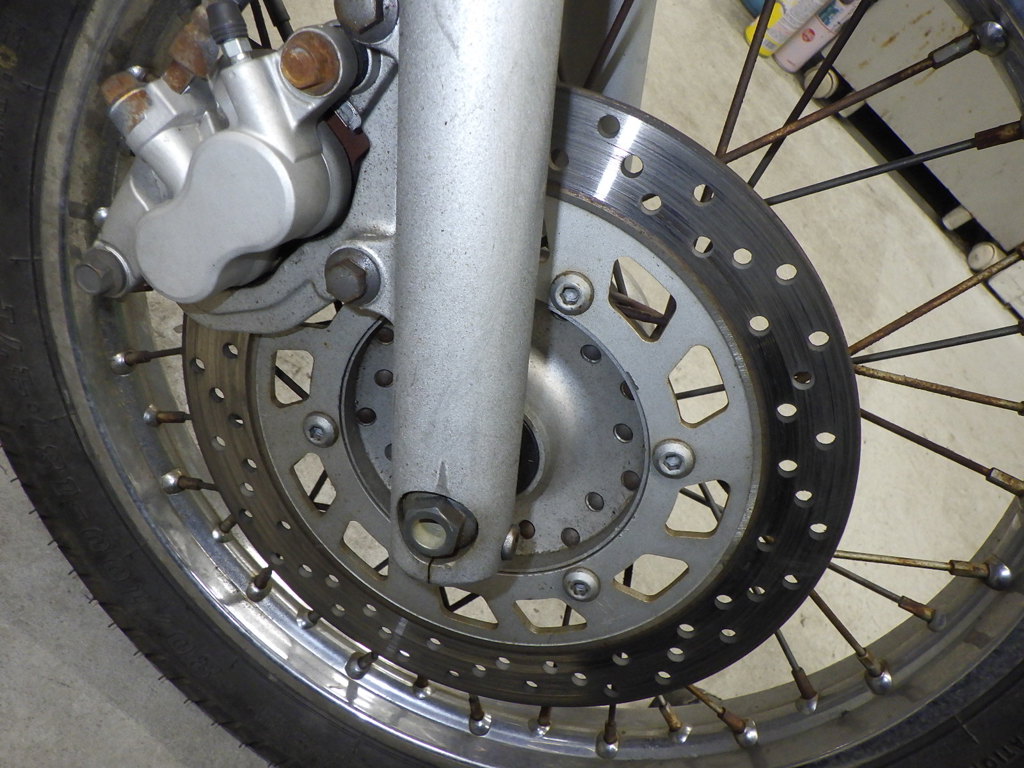 | внешняя часть вилки | царапины <много>, следы коррозии <много>, потек масла |