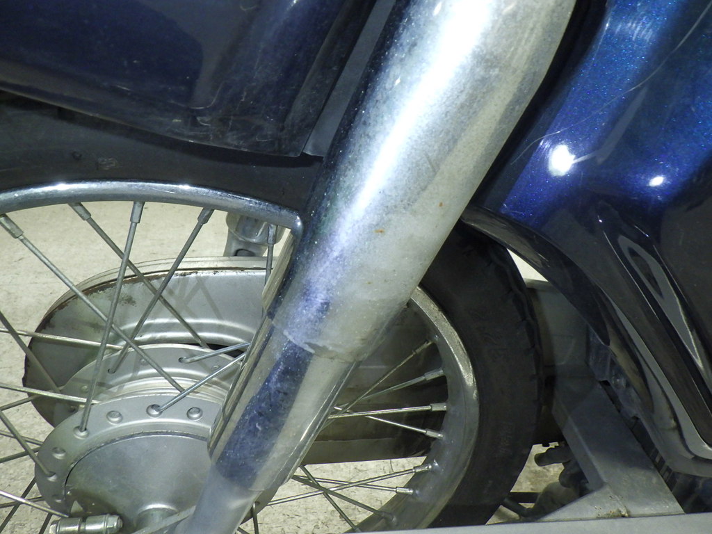 | внешняя часть вилки | царапины, потек масла <много>, слабый |