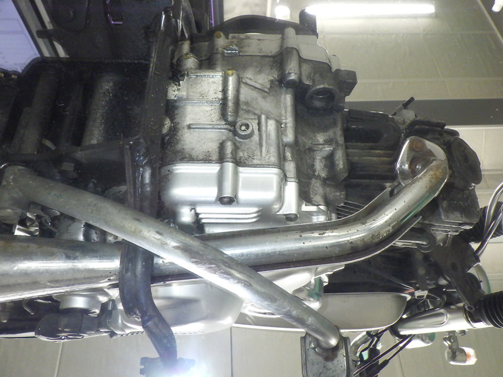 | потек масла | снизу <много> |